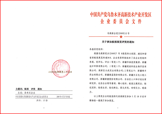 為迎接中華人民共和國誕生60周年和開展好第27個民族團(tuán)結(jié)教育月宣傳活動,高新區(qū)于4月25~26日舉辦了由轄區(qū)內(nèi)各文明委成員單位和各企業(yè)積極參與的“感恩偉大祖國 建設(shè)和諧首府”板報展,華春投資集團(tuán)以著重反映華春企業(yè)全貌和著重反映華春員工風(fēng)采的2塊宣傳板報,以其板報編輯的思想性和構(gòu)思設(shè)計的新穎性,得到了高新區(qū)評委會的首肯,在參展的眾多板報中被評為第一名,將于5月中旬參加由烏魯木齊市委宣傳部組織的優(yōu)秀板報展覽。