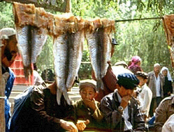 烤魚是最通常的一種吃法,但到了庫爾勒,烤魚也顯出了不同,魚是博斯騰湖鮮嫩肥美肉質(zhì)清甜的小魚,水是博斯滕湖千年雪山融匯而來的純凈雪水,魚肉隨意的穿在小木棍上轉(zhuǎn)動(dòng)翻烤,只刷上孜然、鹽巴和酥油,慢慢的就香氣四溢了。新疆聞名的是烤全羊,但庫爾勒的烤魚卻肯定是更清爽適口的選擇。