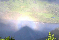 新疆喀納斯湖上空突現(xiàn) “佛光”現(xiàn)象。當(dāng)日游客 在喀納斯觀魚亭旅游觀光,突然發(fā)現(xiàn)在喀納斯湖二道灣上空出現(xiàn)了一個直徑約數(shù)十米的美麗的七彩光環(huán),甚是壯觀。“佛光”大約持續(xù)了十幾分鐘后便逐漸隱去。