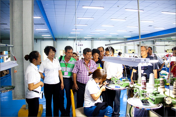 座談會(huì)結(jié)束后,與會(huì)者參觀了華春毛紡針織廠、成品展示店和員工餐廳。臺(tái)灣勞動(dòng)人權(quán)協(xié)會(huì)羅美文會(huì)長一行和自治區(qū)領(lǐng)導(dǎo)對(duì)華春的和諧勞動(dòng)關(guān)系與以人為本的優(yōu)秀企業(yè)文化,給予了高度肯定和贊揚(yáng)。