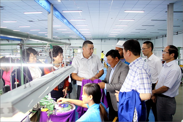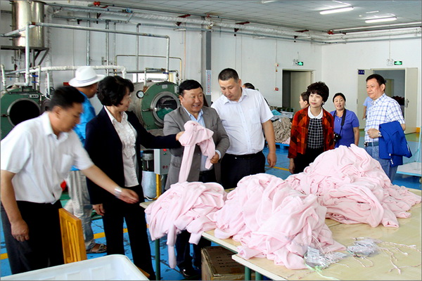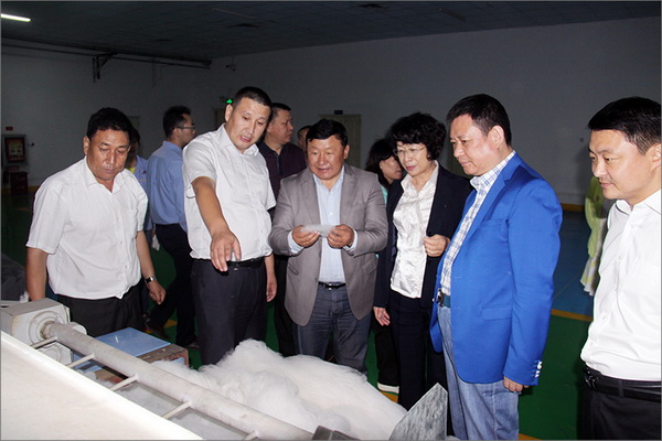 策文繞登省長(zhǎng)一行對(duì)華春集團(tuán)下屬的子公司華春毛紡工業(yè)園進(jìn)行了考察,在參觀了以現(xiàn)代化設(shè)備加工生產(chǎn)高檔羊絨制品的全過(guò)程后,與華春集團(tuán)就羊絨原料的戰(zhàn)略采購(gòu)合作進(jìn)行了詳細(xì)全面的洽談。李成功總裁向策文繞登省長(zhǎng)一行介紹了華春毛紡產(chǎn)業(yè)今后發(fā)展的總體戰(zhàn)略規(guī)劃、華春毛紡工業(yè)園一期每年的生產(chǎn)原料所需量和產(chǎn)品出口及品牌建設(shè)目標(biāo)等情況,希望在中國(guó)建設(shè)絲綢之路經(jīng)濟(jì)帶的重大歷史機(jī)遇下,共享新絲綢之路經(jīng)濟(jì)帶構(gòu)想帶來(lái)的互惠互利。策文繞登省長(zhǎng)介紹了蒙古國(guó)科布多省畜牧業(yè)羊絨生產(chǎn)的基本狀況。他表示,希望與華春集團(tuán)建立長(zhǎng)期的羊絨供貨合作關(guān)系,以帶動(dòng)蒙古國(guó)科布多省畜牧業(yè)的發(fā)展。