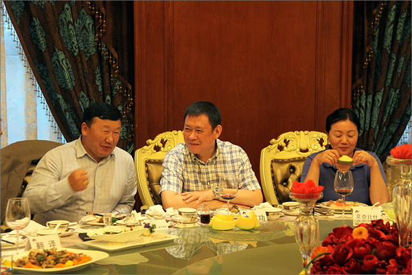 8月15日,在兵團(tuán)五家渠師市領(lǐng)導(dǎo)的陪同下,蒙古國(guó)科布多省省長(zhǎng)策文繞登率領(lǐng)的代表團(tuán)一行,前來(lái)新疆華春投資集團(tuán)進(jìn)行參觀交流,并商談戰(zhàn)略合作。華春集團(tuán)董事局主席兼總裁李成功先生與集團(tuán)高管人員李榮桂、高青及華春毛紡相關(guān)管理人員參加了座談。