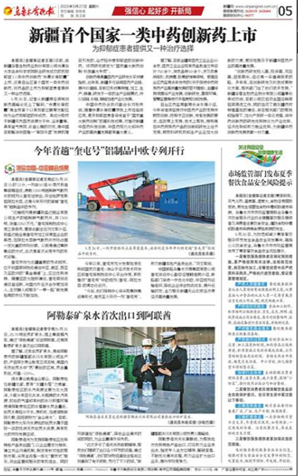 《烏魯木齊晚報(bào)》2023.5.27報(bào)道:新疆國家一類中藥創(chuàng)新藥上市