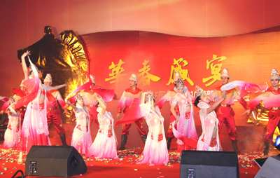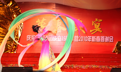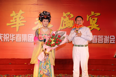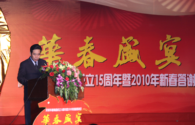 大型舞蹈《甜甜的歌兒迎賓客》拉開了慶典晚會的序幕,自治區(qū)工商聯(lián)黨組副書記、常務(wù)副主席陳建華發(fā)表了熱情洋溢的致辭:“過去的15年,華春投資集團(tuán)在創(chuàng)造社會財(cái)富、加快步伐的同時(shí),積極主動、義不容辭地承擔(dān)社會責(zé)任,創(chuàng)造就業(yè)機(jī)會。關(guān)愛企業(yè)員工,在全區(qū)民營企業(yè)中率先建立員工子女助學(xué)基金和員工父母敬老基金,大力開展捐資助學(xué)活動,積極參與光彩事業(yè)和社會公益事業(yè),一次次為社會弱勢群體奉獻(xiàn)出了華春人的一片愛心。在15年的發(fā)展歷程中,華春投資集團(tuán)的努力,得到國家和社會的公認(rèn),獲得了諸多令業(yè)內(nèi)贊嘆的榮譽(yù)。歷史又將進(jìn)入了一個(gè)新的起點(diǎn),2010年是國務(wù)院“非公36條”和自治區(qū)黨委8號文件出臺五周年,今年5月自治區(qū)將召開推動非公有制企業(yè)和中小企業(yè)發(fā)展的工作會議,華春投資集團(tuán)將迎來快速發(fā)展的新機(jī)遇。在此,我們衷心的祝愿:華春投資集團(tuán)在新的起點(diǎn)上,更加振奮精神、更加團(tuán)結(jié)奮斗、更加開拓前進(jìn),努力迎來2個(gè)、第3個(gè)、更多加更輝煌的15年!在此,我們衷心的希望:華春團(tuán)隊(duì)在今后的若干個(gè)15年中,為新疆經(jīng)濟(jì)發(fā)展、為整個(gè)社會,再源源不斷的譜寫出創(chuàng)新、奮發(fā)、輝煌的新篇章!”