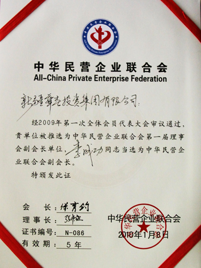 于新一年的1月底在北京召開的中華民營企業(yè)聯(lián)合會(huì)年會(huì)和中國民營科技實(shí)業(yè)家協(xié)會(huì)2010年新春團(tuán)拜會(huì)上,總裁李成功先生分別當(dāng)選為中華民營企業(yè)聯(lián)合會(huì)副會(huì)長和中國民營科技實(shí)業(yè)家協(xié)會(huì)副理事長,華春投資集團(tuán)成為中華民營企業(yè)聯(lián)合會(huì)副會(huì)長單位。同時(shí),華春投資集團(tuán)還在由中國品牌發(fā)展組織委員會(huì)舉辦的評(píng)選活動(dòng)中榮獲2009中國品牌社會(huì)責(zé)任貢獻(xiàn)獎(jiǎng),總裁李成功先生被授予2009中國品牌創(chuàng)新人物稱號(hào)。