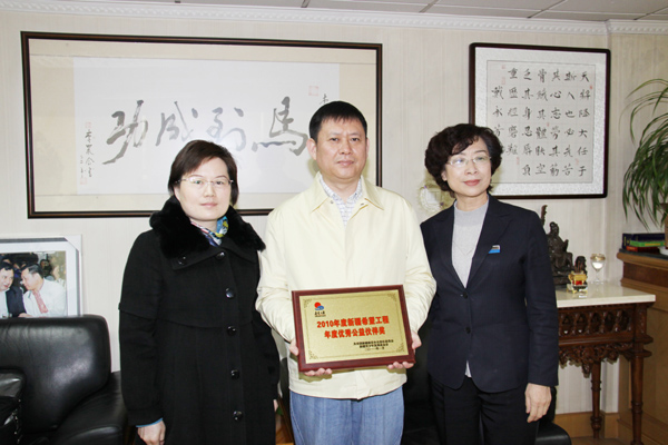 新疆維吾爾自治區(qū)團委青少年發(fā)展基金會副秘書長趙艷紅一行,于3月25日專程前往新疆華春投資集團總部,代表自治區(qū)青少年發(fā)展基金會將“2010年度新疆希望工程優(yōu)秀公益伙伴獎”榮譽牌匾授予新疆華春投資集團,以表彰新疆華春投資集團為發(fā)展社會公益事業(yè)作出的卓越貢獻,李成功總裁代表集團接受了獎牌。