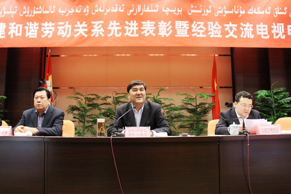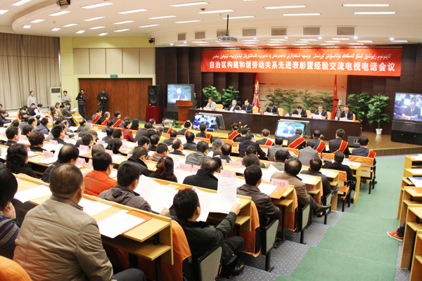 自治區(qū)構(gòu)建和諧勞動關(guān)系先進表彰暨經(jīng)驗交流電視電話會議出席的領(lǐng)導(dǎo)
