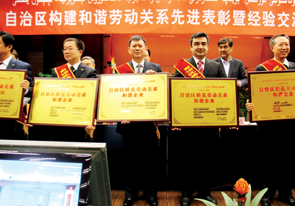 2011年12月17日,在自治區(qū)黨委電視電話會議室隆重召開的“自治區(qū)構(gòu)建和諧勞動關(guān)系先進表彰暨經(jīng)驗交流電視電話會議”上,新疆華春投資集團榮獲“自治區(qū)模范勞動關(guān)系和諧企業(yè)”稱號,受到自治區(qū)黨委、政府的表彰,這是新疆自治區(qū)黨委、政府授予企業(yè)的最高榮譽。自治區(qū)黨委副書記、自治區(qū)主席努爾•白克力出席會議并作了重要講話,并與自治區(qū)黨政領(lǐng)導(dǎo)同志會見了受表彰的模范勞動關(guān)系和諧企業(yè)和工業(yè)園區(qū)代表。