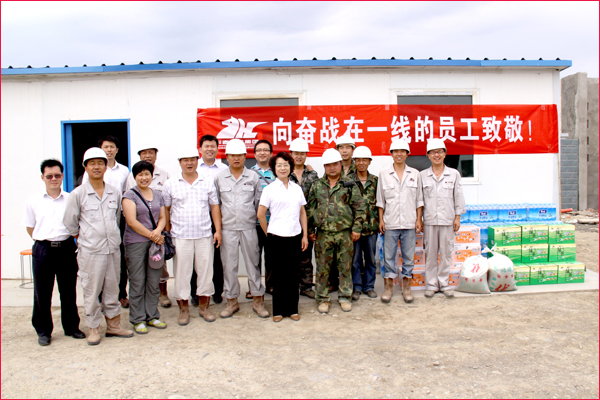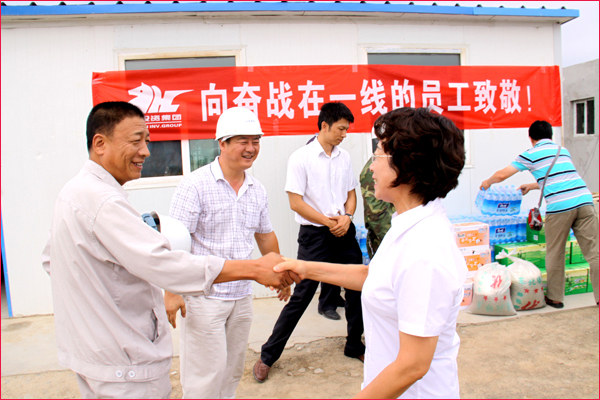 關(guān)愛員工,是華春企業(yè)文化的精髓。入夏天氣持續(xù)高溫,炎熱異常,但五家渠華春毛紡工業(yè)園項(xiàng)目建設(shè)工地的員工們,頂烈日、戰(zhàn)酷暑,堅守在崗位。華春集團(tuán)心系一線員工,自6月下旬以來,集團(tuán)行政辦與有關(guān)子公司管理層都前去慰問。中國關(guān)愛員工優(yōu)秀民營企業(yè)家李成功總裁,還特地于端午節(jié)親臨工地現(xiàn)場,親切看望慰問了員工與施工單位的工作人員。華春集團(tuán)與總裁李成功先生的關(guān)心,極大的鼓舞著一線員工的工作熱情,大家決心要以實(shí)際行動發(fā)揚(yáng)工人階級頑強(qiáng)拼搏的精神,有序推進(jìn)工程建設(shè),為華春毛紡工業(yè)園項(xiàng)目早日建成做出貢獻(xiàn)。