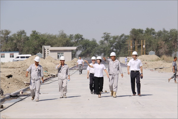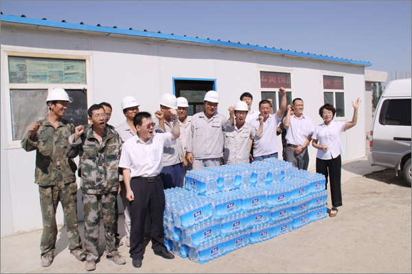 在新疆華春投資集團(tuán)工會(huì)發(fā)出“決戰(zhàn)50天 建成毛紡工業(yè)園”號(hào)召后的20天,于7月31日集團(tuán)工會(huì)主席高青攜編輯部全員,帶著李成功總裁和華春全體員工的期望,前往五家渠毛紡工業(yè)園項(xiàng)目建設(shè)工地,對(duì)工程技術(shù)人員“誓保毛紡工業(yè)園如期建成”諾言的兌現(xiàn)情況進(jìn)行了解,同時(shí)對(duì)奮戰(zhàn)在一線的工程部、華春毛紡公司的員工和設(shè)備安裝人員進(jìn)行了慰問,送去了礦泉水。