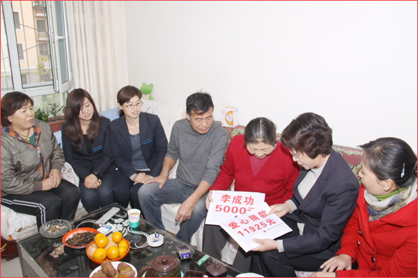 2012年10月17日,盡管季節(jié)已進(jìn)入瑟瑟寒冷的深秋,但新疆華春投資集團(tuán)的愛(ài)心捐款,為患病員工送去了溫情暖意。新疆華春投資集團(tuán)工會(huì)主席高青與人力資源部、集團(tuán)子公司華景物業(yè)及編輯部的管理人員一行,代表新疆華春投資集團(tuán)李成功總裁和華春全員前去親切慰問(wèn)患病的員工杜菊萍,當(dāng)她接過(guò)李成功總裁和華春?jiǎn)T工16925元的愛(ài)心捐款時(shí),流下感動(dòng)的淚水。杜菊萍的丈夫激動(dòng)的一再說(shuō):“太感謝華春老總和華春人了,對(duì)一個(gè)基層員工還這樣的關(guān)心,太感謝、太感謝了!”