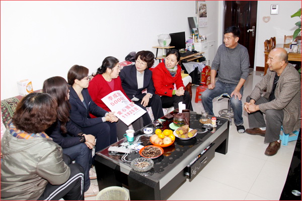 杜菊萍是集團(tuán)下屬的華景物業(yè)公司宏怡小區(qū)的一位保潔員,因患腸癌做了手術(shù)現(xiàn)進(jìn)行化療。當(dāng)企業(yè)得知后,立即決定以捐款的方式為杜菊萍送去關(guān)愛(ài)與幫助。李成功總裁首先捐款5000元,李總裁的三弟李榮獻(xiàn)這位寧波軍區(qū)的軍官又給予1000元的愛(ài)心捐款。一人有難,全員支援,扶危助困是華春人本文化的傳統(tǒng),大家都紛紛伸出授助之手,從有的高管人員的1000元到基層員工的十多元,無(wú)論多少,匯聚成愛(ài)的洪流,為杜菊萍獻(xiàn)出自己的一份愛(ài)心。正是華春大家庭的深切關(guān)懷,讓患病員工感到了團(tuán)隊(duì)的溫暖。