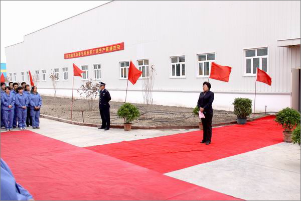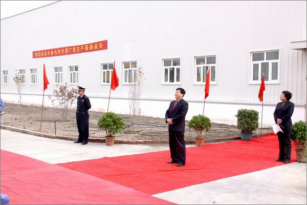新疆華春投資集團(tuán)李成功總裁、鄧潔文執(zhí)總與集團(tuán)高管參加了毛紡工業(yè)園針織廠試生產(chǎn)儀式,并先后發(fā)表了熱情洋溢的致辭。儀式由董事局主席助理、華春毛紡執(zhí)總李鳳香主持。