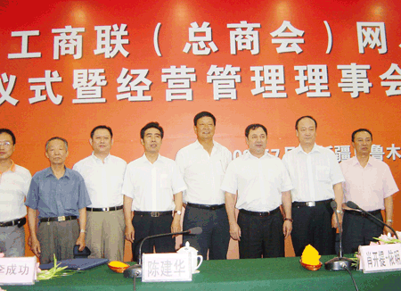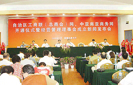新疆維吾爾自治區(qū)工商聯(lián)(總商會)的官方網(wǎng)站即自治區(qū)工商聯(lián)(總商會)網(wǎng)、中亞南亞商務(wù)網(wǎng)開通暨兩網(wǎng)理事會成立新聞發(fā)布會,于7月5日上午在昆侖賓館舉行,自治區(qū)黨委常委肖開提·依明出席大會,并為新疆總商會網(wǎng)和中亞南亞商務(wù)網(wǎng)的正式開通按下鼠標(biāo)開通兩網(wǎng)。同時, 正式成立了兩網(wǎng)經(jīng)營管理理事會,肖開提·依明任兩網(wǎng)名譽(yù)理事長,新疆華春投資集團(tuán)董事局主席兼總裁李成功當(dāng)選為兩網(wǎng)第一屆理事會的理事長。